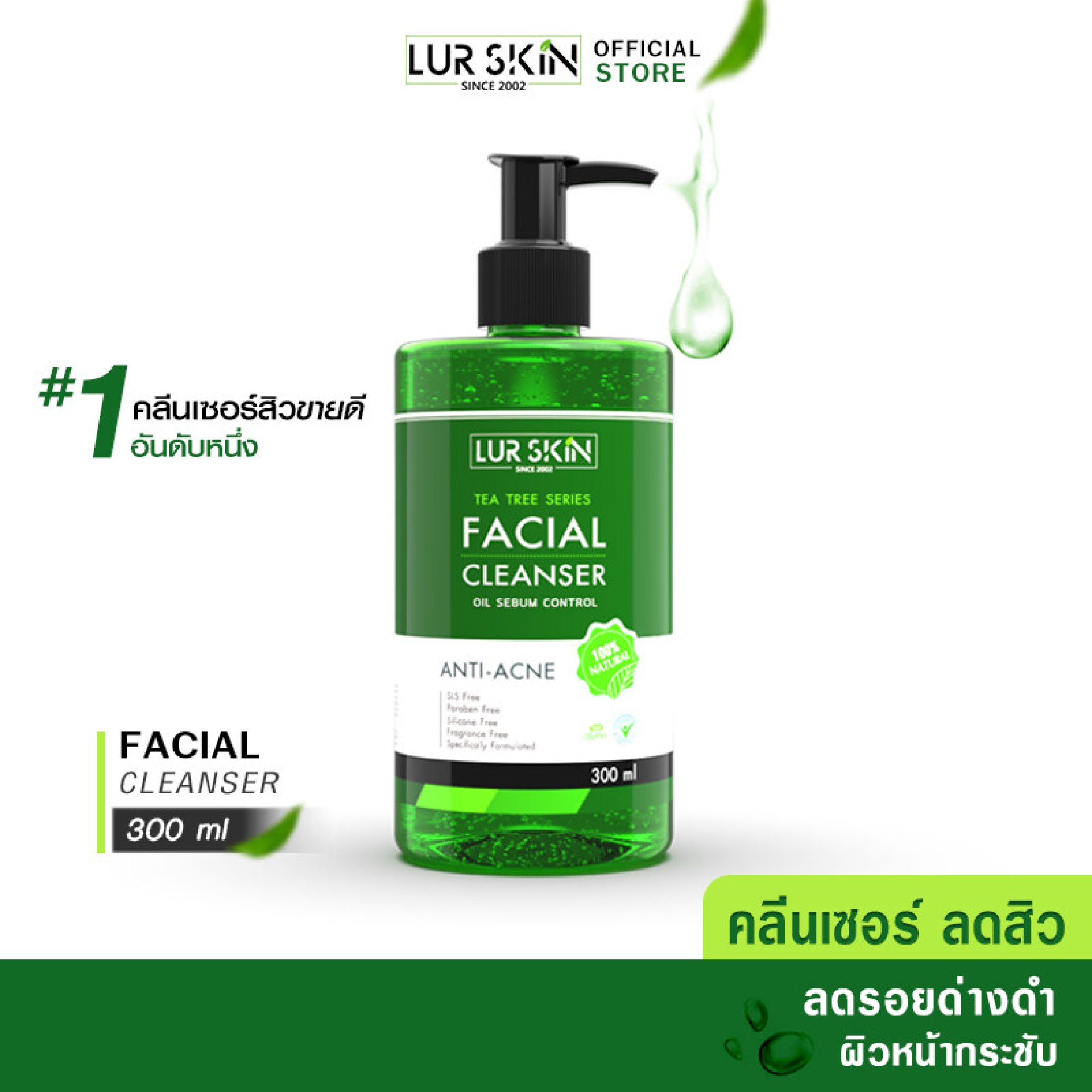 [ส่งไว ส่งฟรี!] LUR SKIN Tea Tree Series Facial Cleanser 300 ml (1 ขวด) เจลล้างหน้าสำหรับผู้มีปัญหาสิว ลดสิว ผิวแพ้ง่าย คุมมัน?