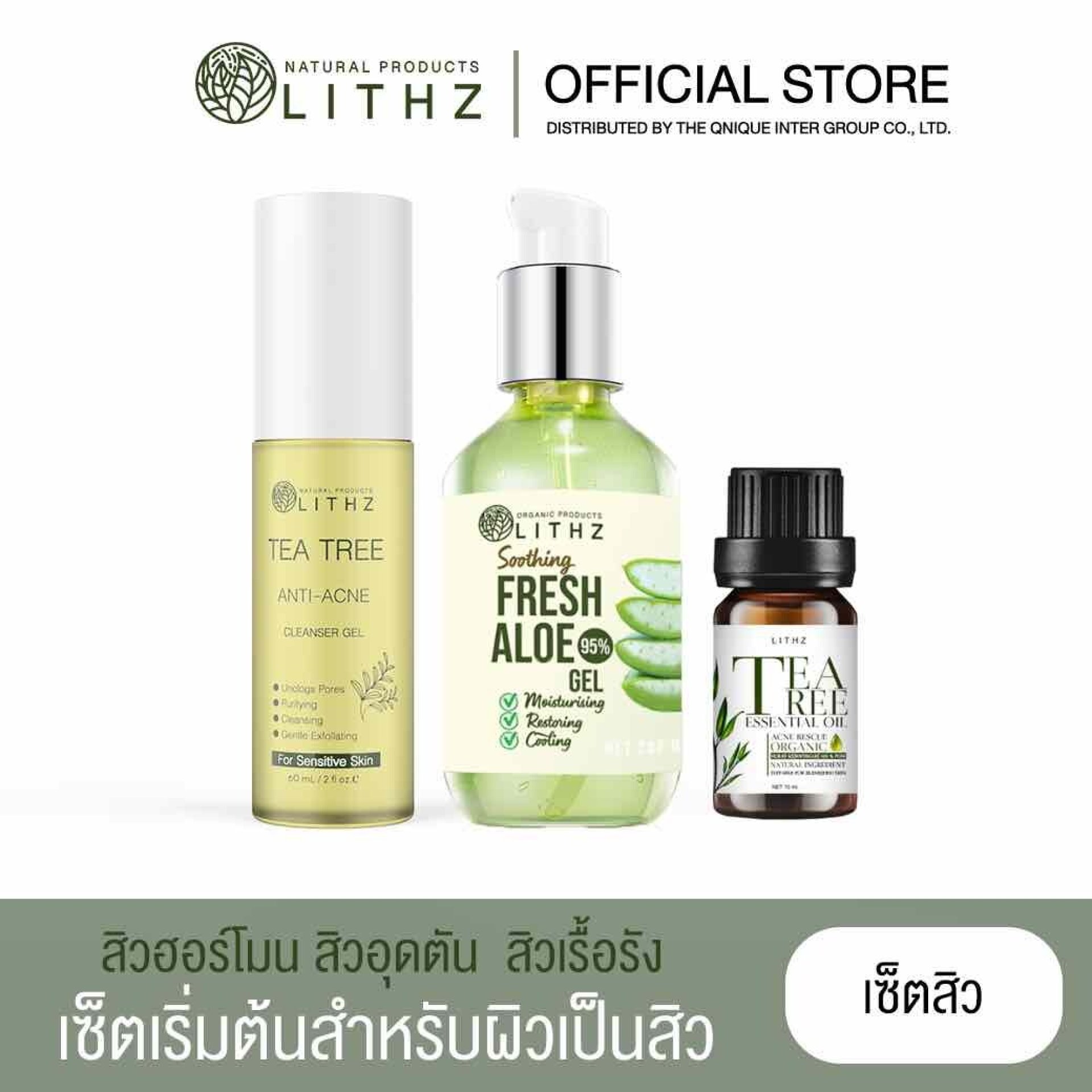 **เซ็ตสำหรับผิวเป็นสิว** TEA TREE ESSENTIAL OIL 10ml. + ANTI ACNE CLEANSER GEL 60g. + SOOTHING FRESH ALOE GEL 200ml.